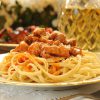 Τρυφερά κομμάτια φιλέτου κοτόπουλου σιγομαγειρεμένα στη κατσαρόλα με ντομάτα και μυρωδικά, σερβίρονται με λιγκουίνι.